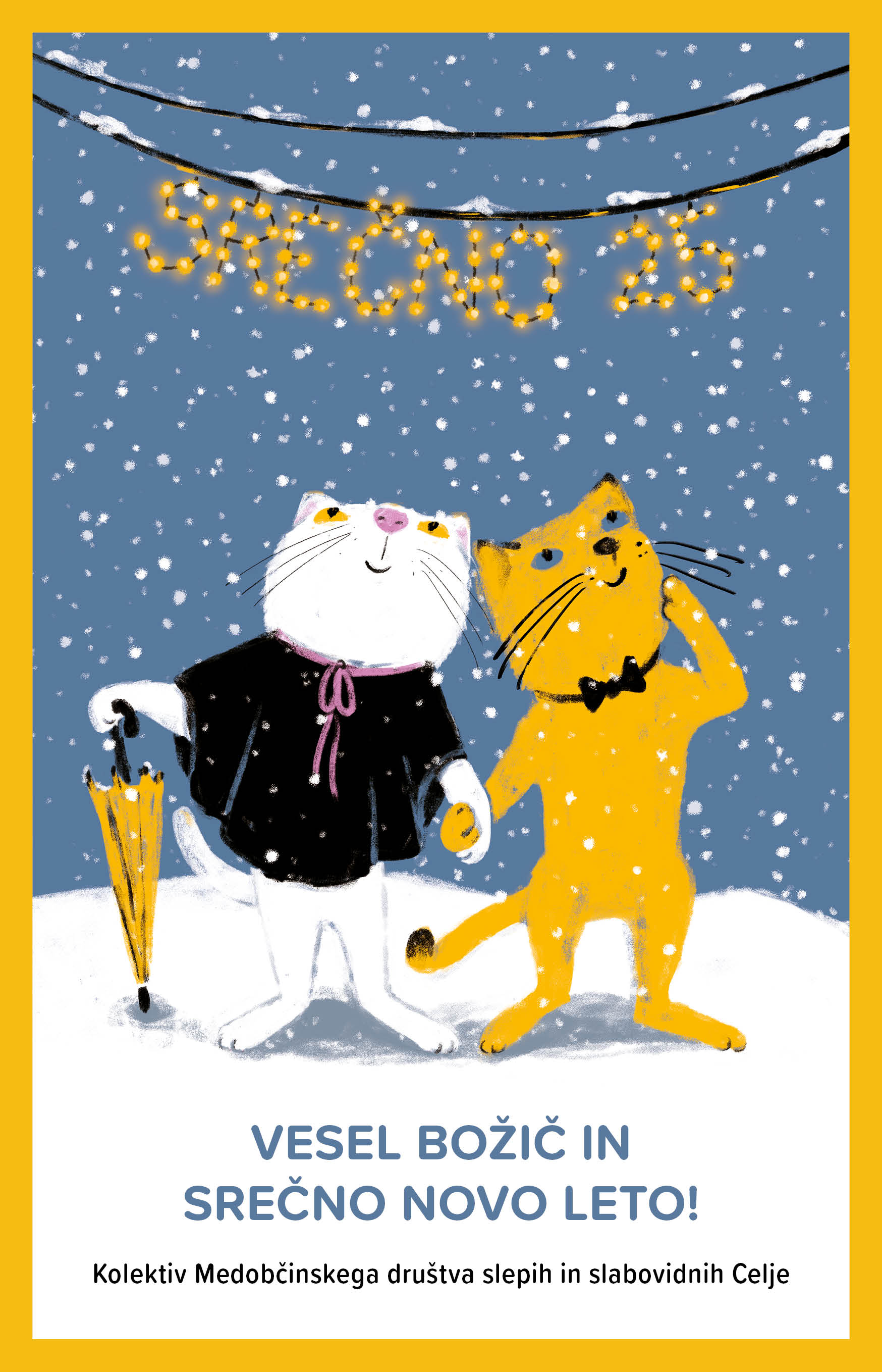Na letošnji voščilnici sta dve mački, ki simbolizirata vse tisto, kar si želimo v prihajajočem letu.